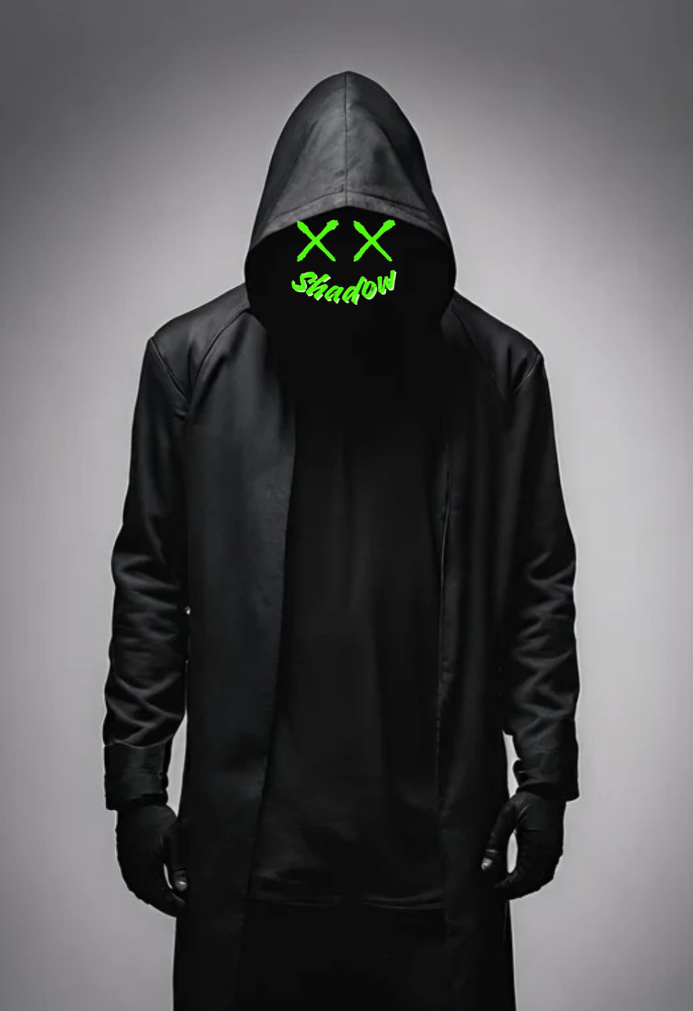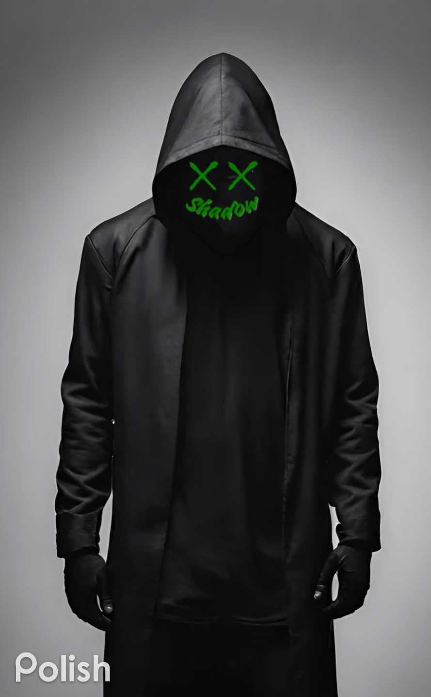 clima de mistério no ar, vestindo roupas escuras e cobrindo